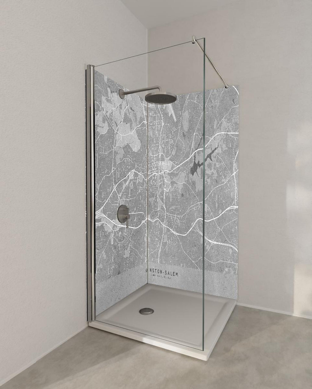 Duschrückwand - Vintage-Stadtplan Winston Salem in Grau