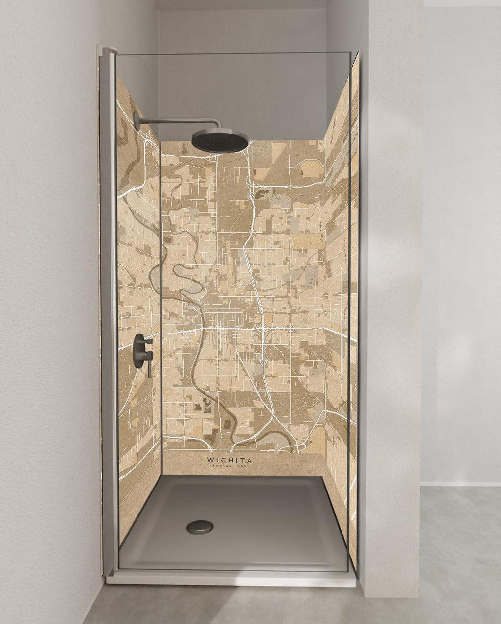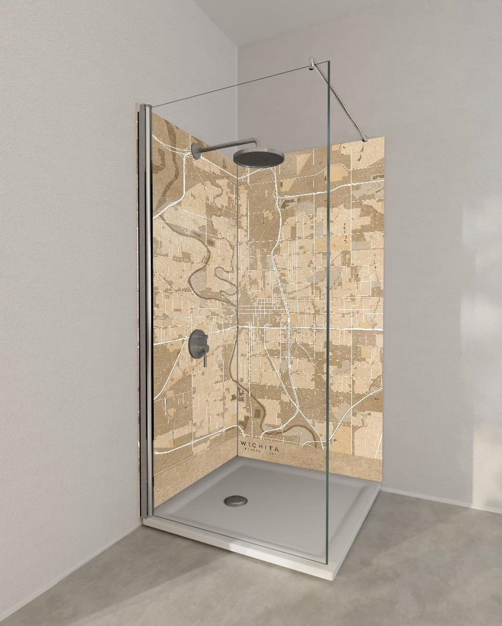 Duschrückwand - Vintage Wichita Stadtplan in Sepiatönen