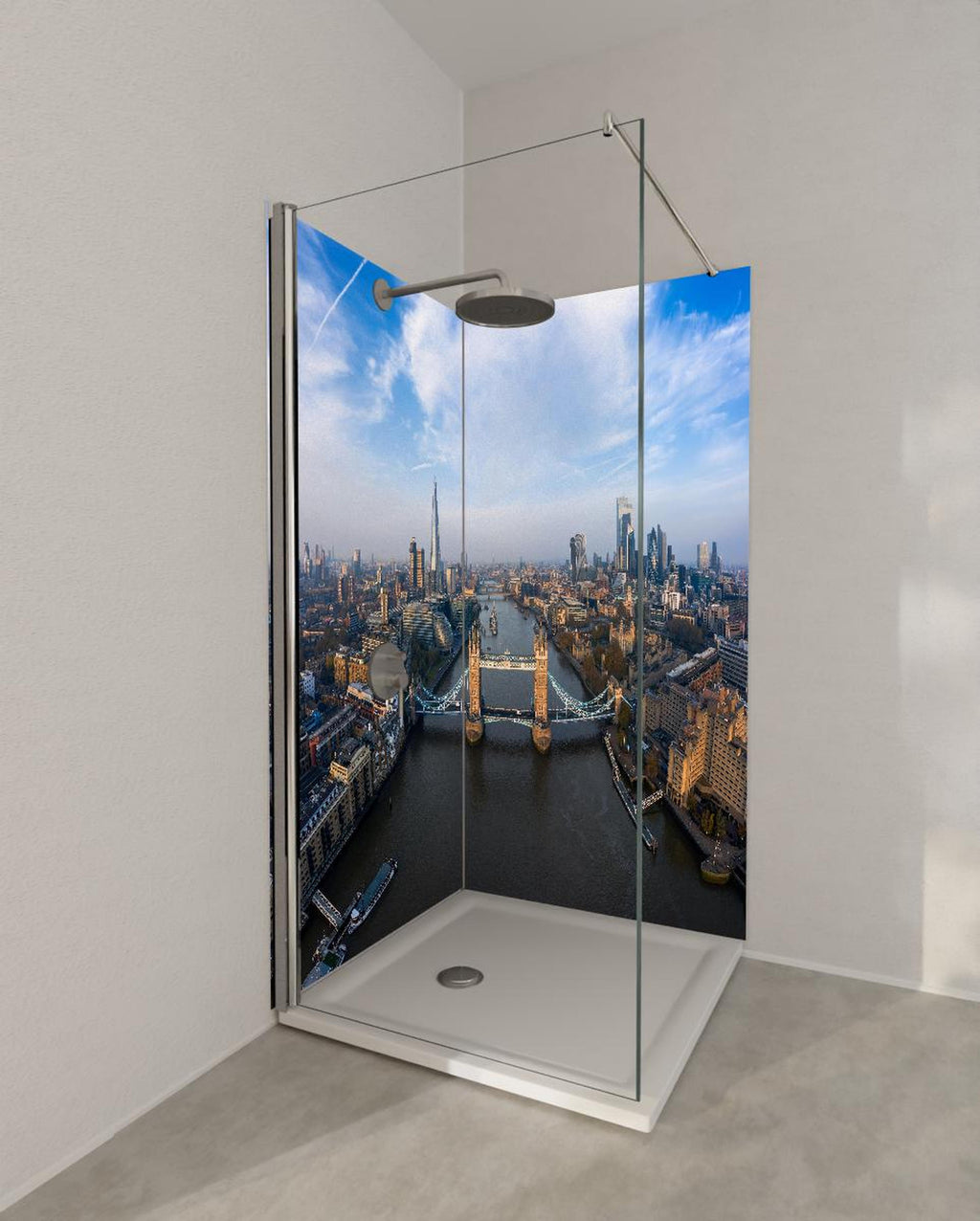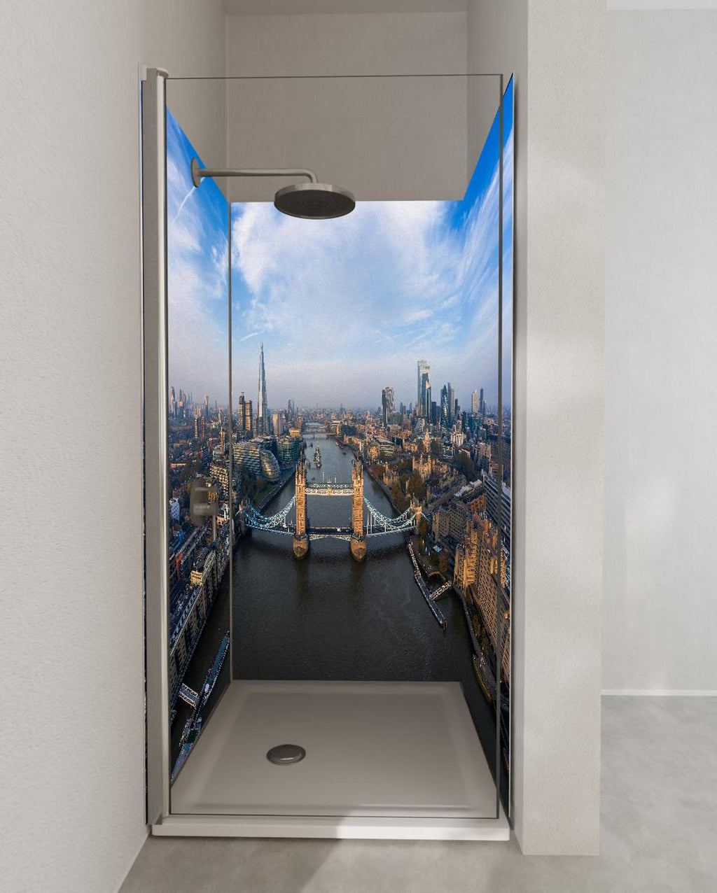 Duschrückwand - Vogelperspektive der Tower Bridge, London