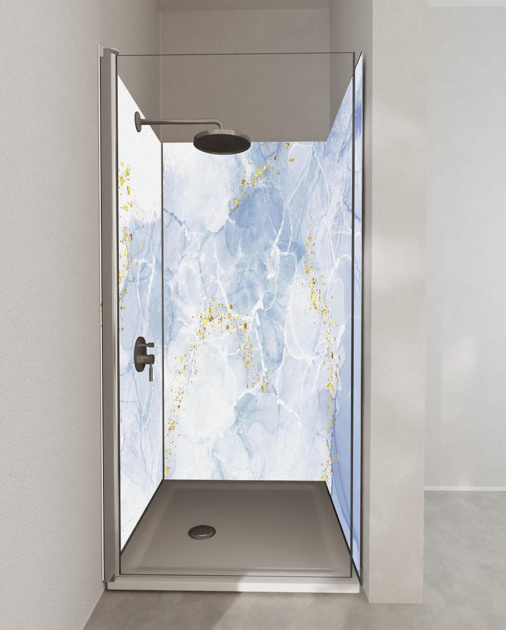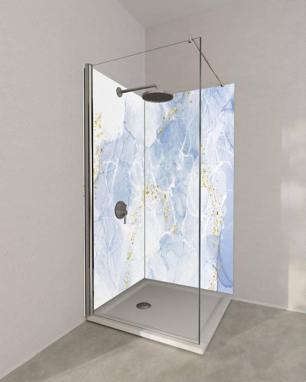 Duschrückwand - Weiß-Gold Marmoroptik Handgemalt Elegant