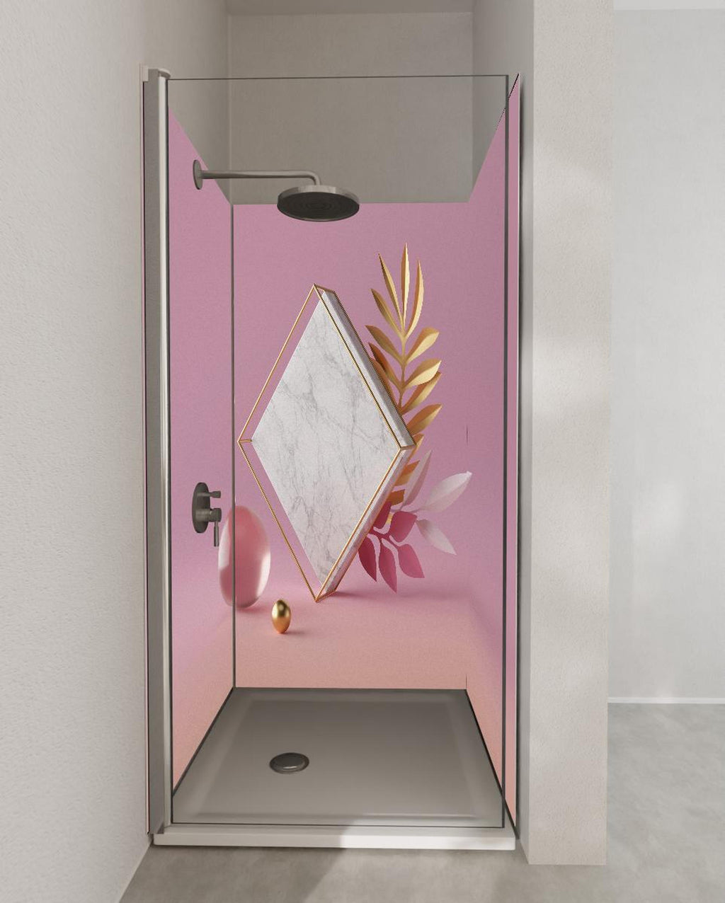 Duschrückwand - Weißer Marmor-Rhombus auf rosanem Hintergrund