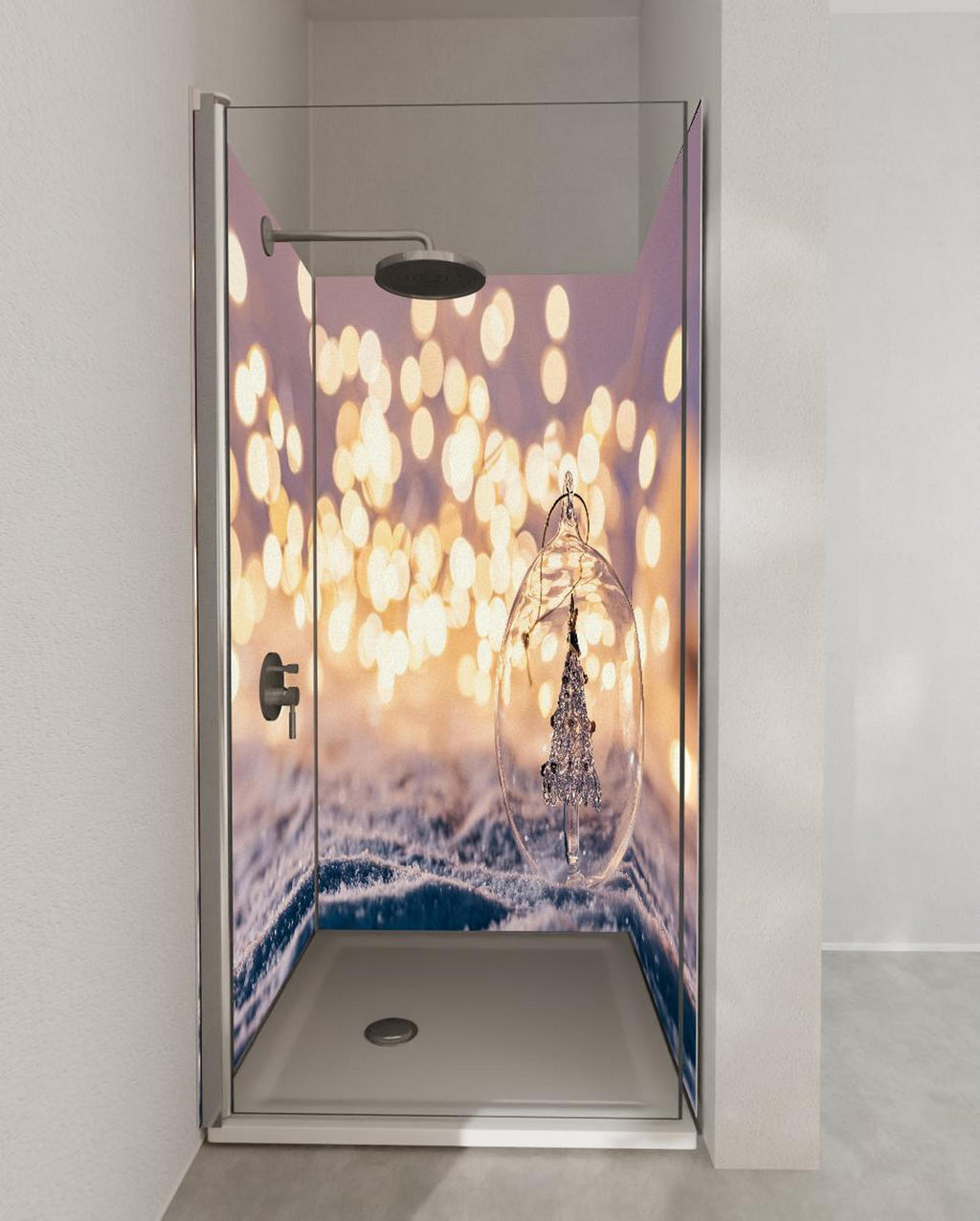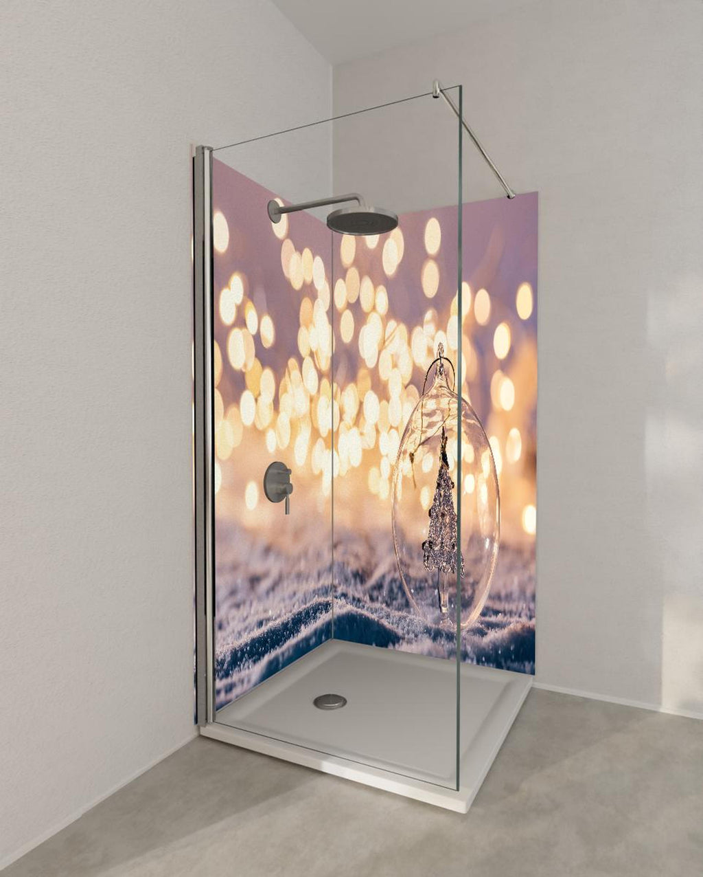 Duschrückwand - Winterliche Weihnachtskugel mit Baum-Motiv