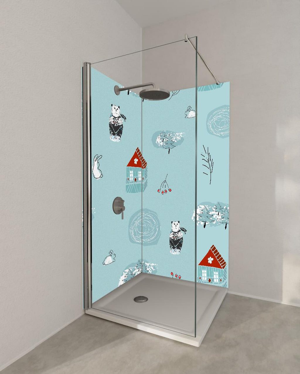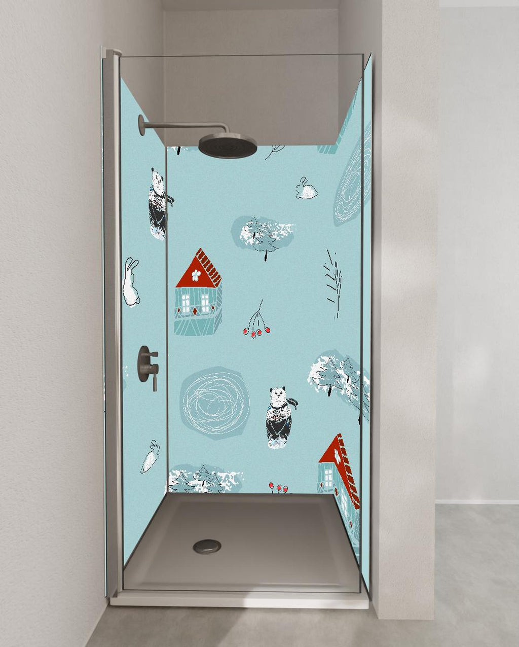 Duschrückwand - Winterliches Kinderzimmer Muster mit Tieren