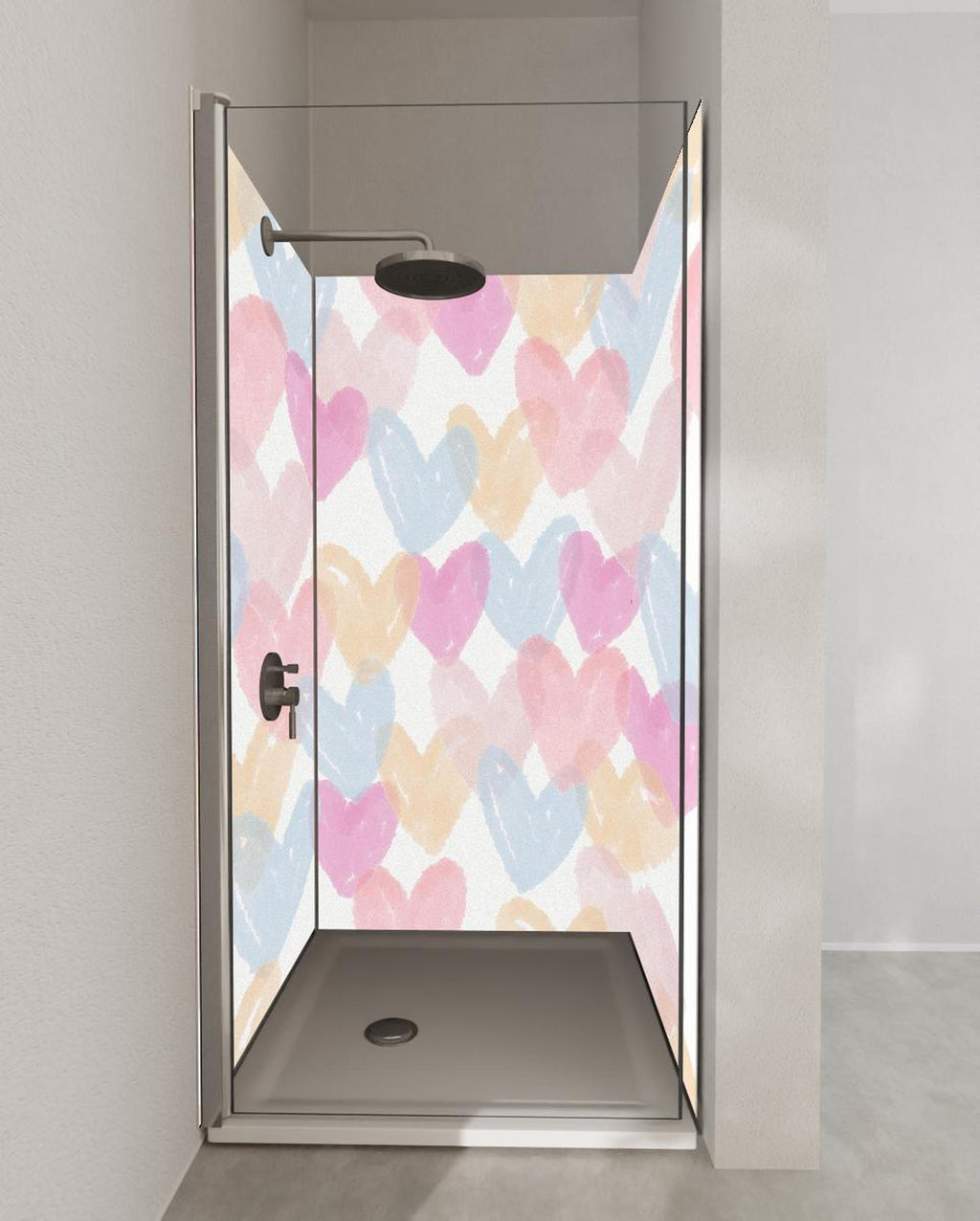 Duschrückwand - Zarte Pastellherzen Aquarell Design