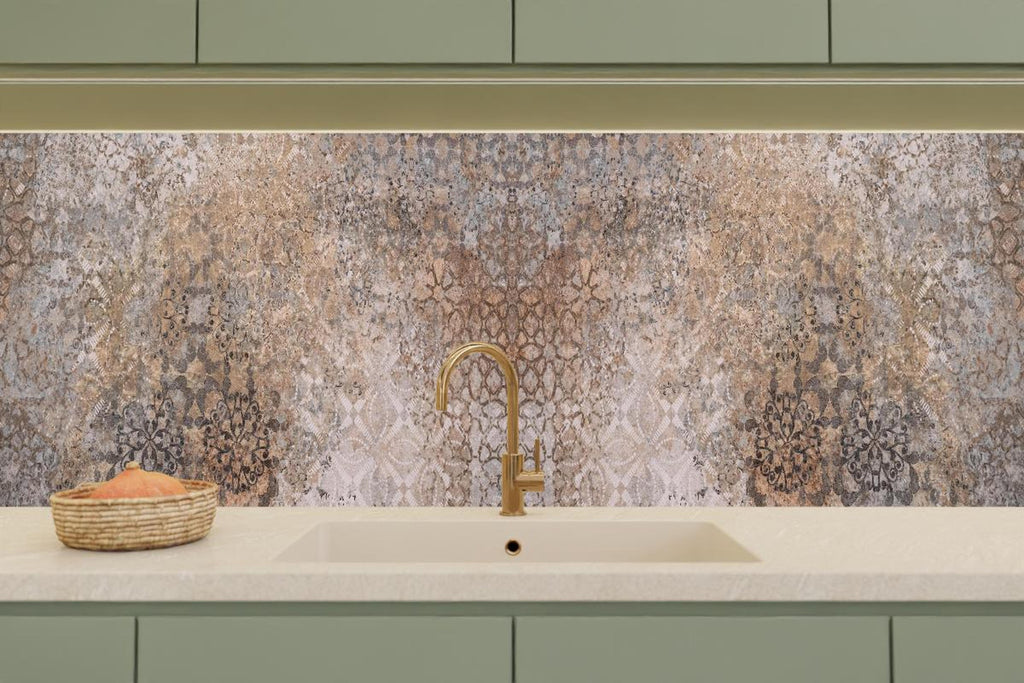 Küchenrückwand - Abgenutzte bräunliche Vintage Tapete