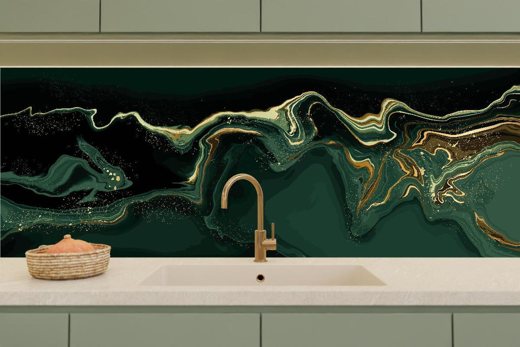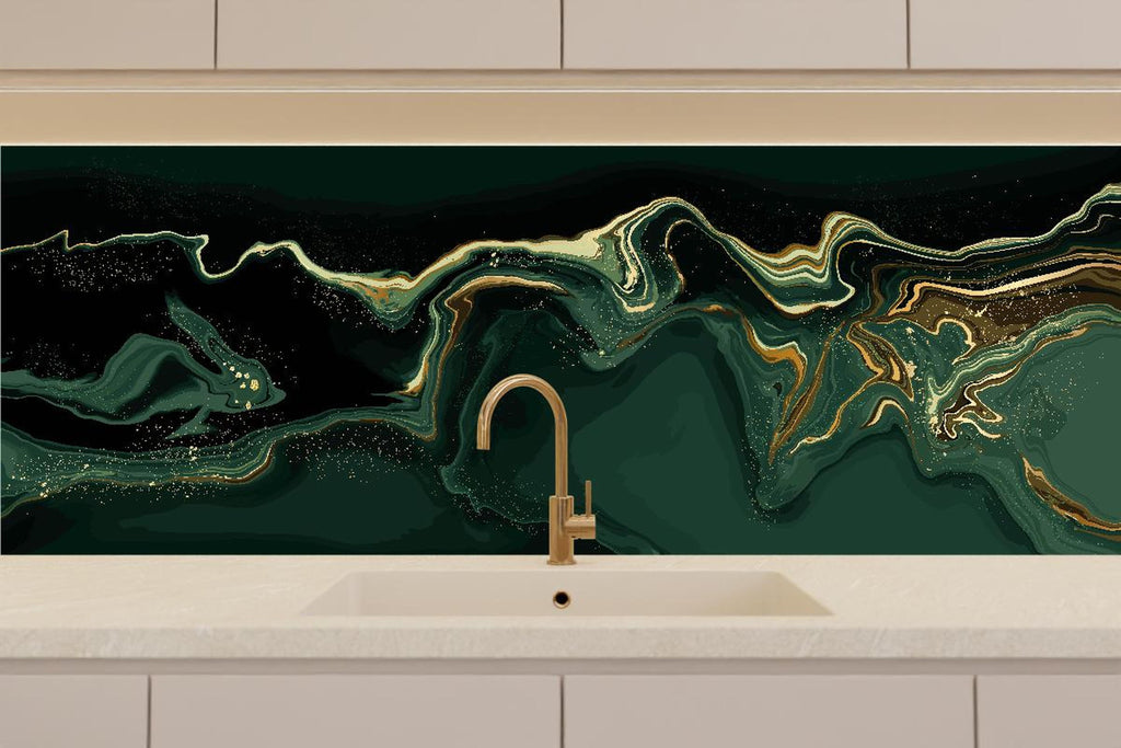 Küchenrückwand - Abstrakte Kunst Leinwand in Grün mit Goldakzenten