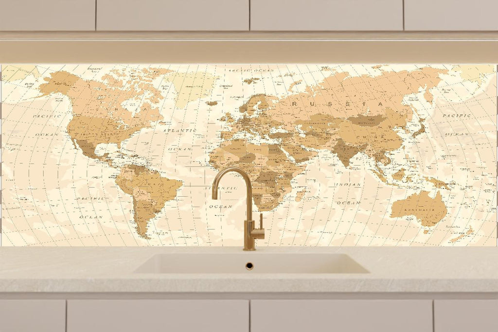 Küchenrückwand - Beige Vintage Weltkarte Wanddekor