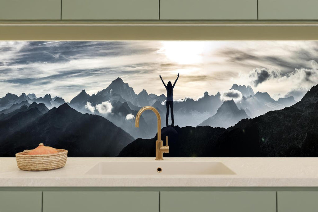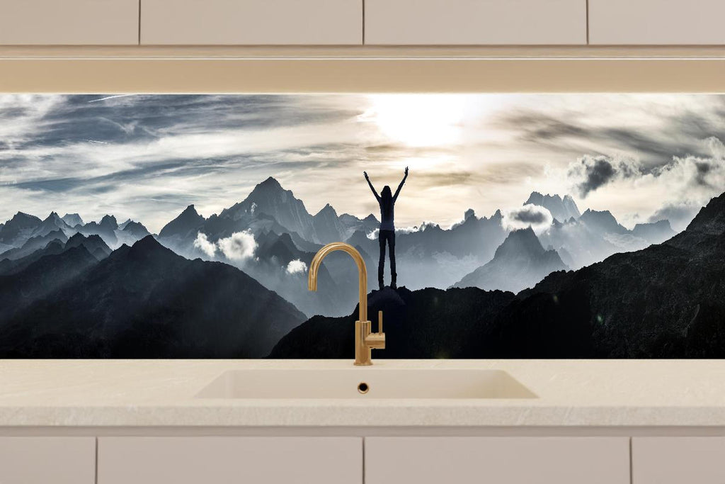 Küchenrückwand - Bergsteigerin am Gipfel