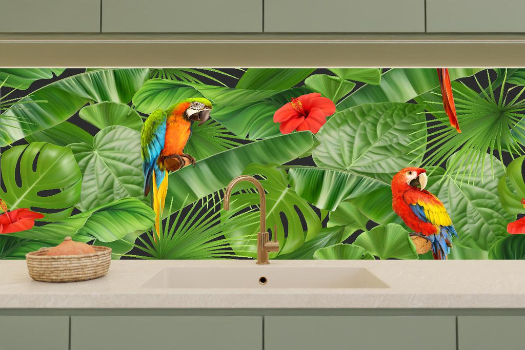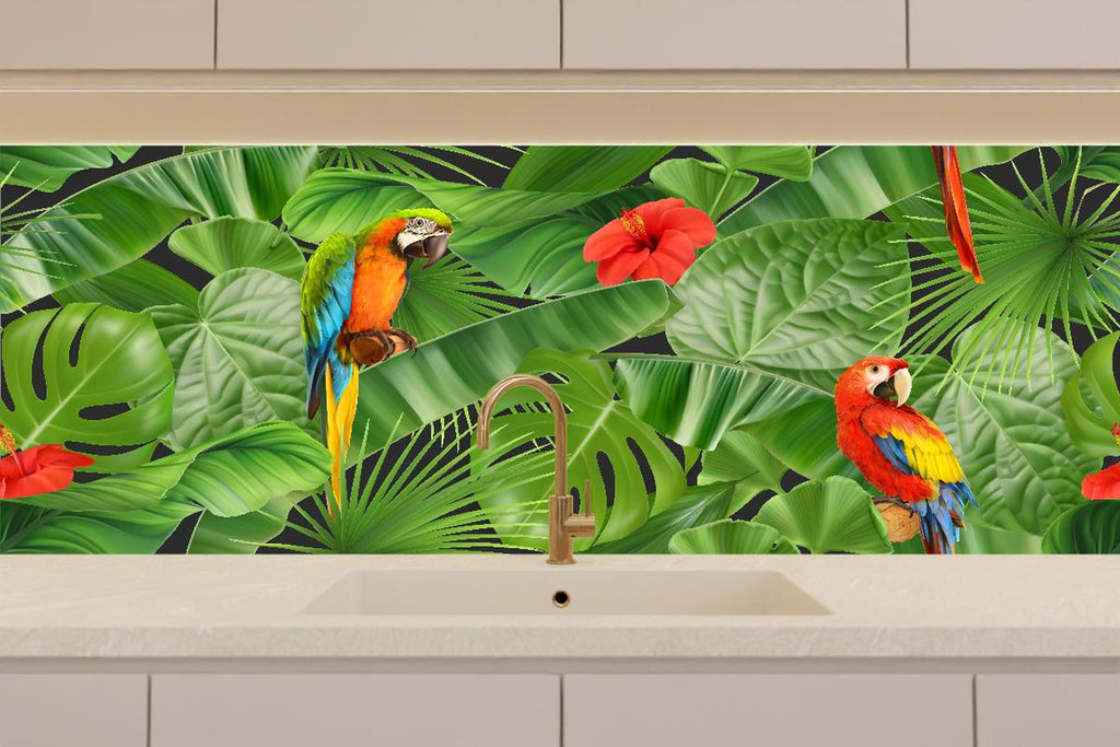 Küchenrückwand - Bunter Papagei Dschungel Design