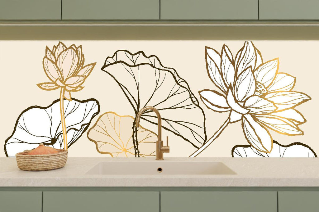 Küchenrückwand - Elegante goldene Linienkunst auf Beige