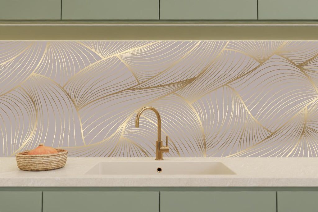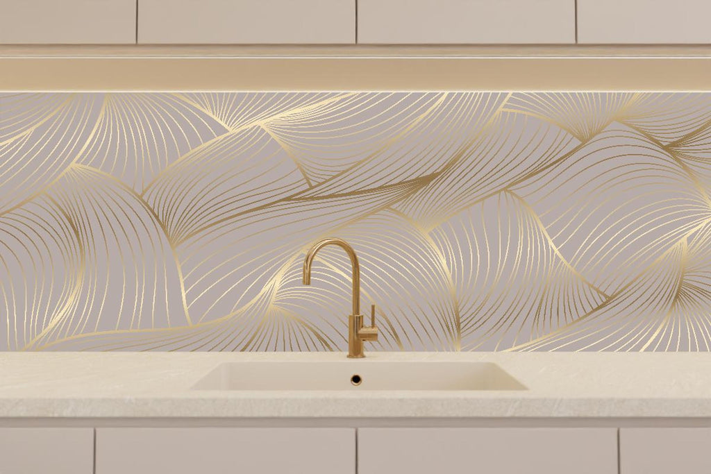 Küchenrückwand - Elegantes Gold-Beige Wellenstruktur Design