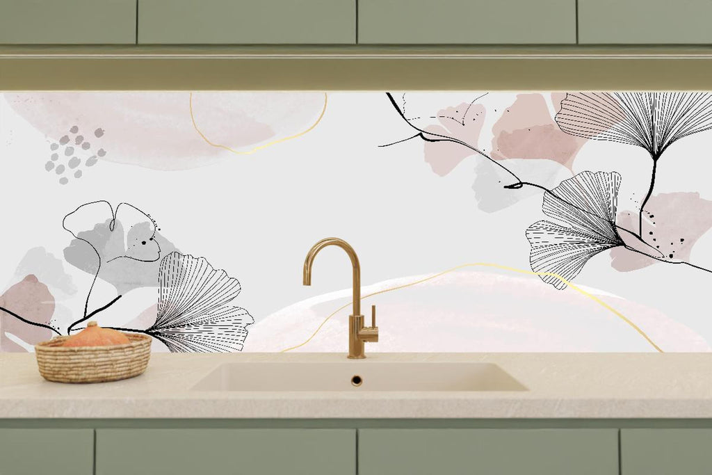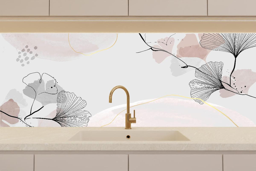 Küchenrückwand - Grau Beige Blättermuster Abstrakte Kunst