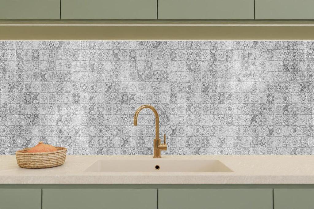 Küchenrückwand - Graues weißes Mosaikmotiv