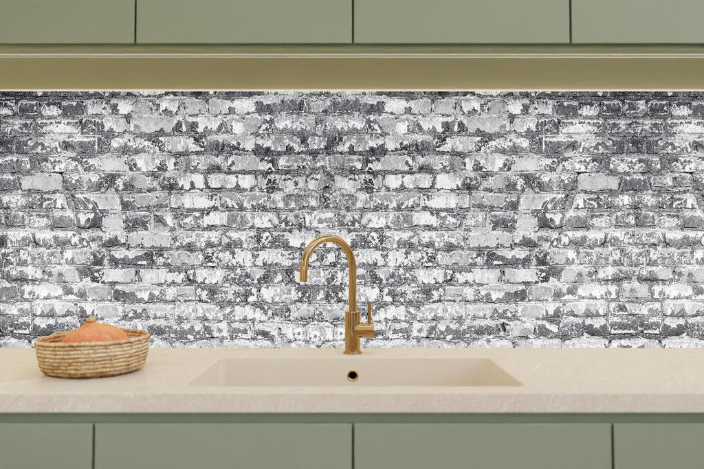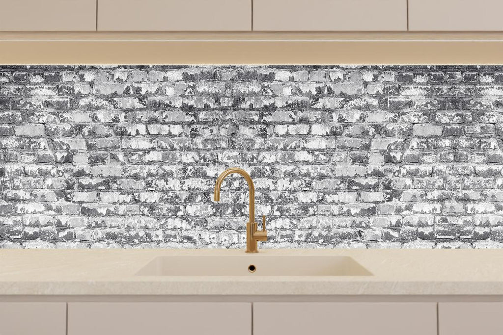 Küchenrückwand - Hellgraue verwitterte Vintage Ziegelwand