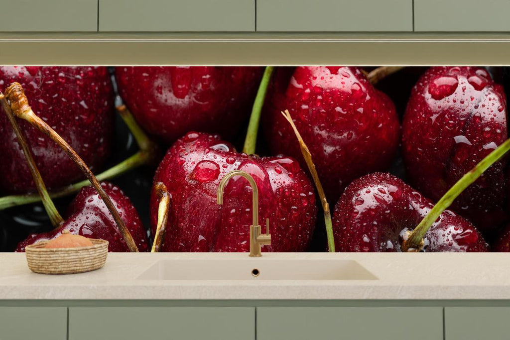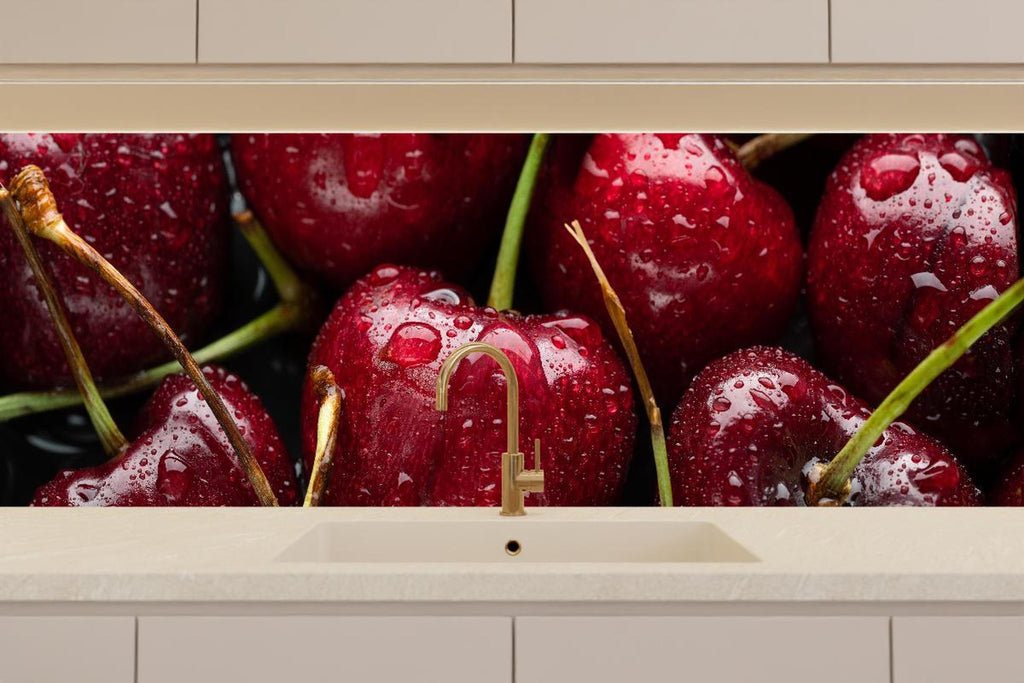 Küchenrückwand - Kirschen mit Wasserperlen