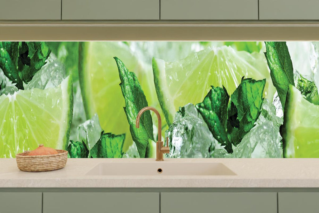 Küchenrückwand - Limette und Minzblätter mit Eis