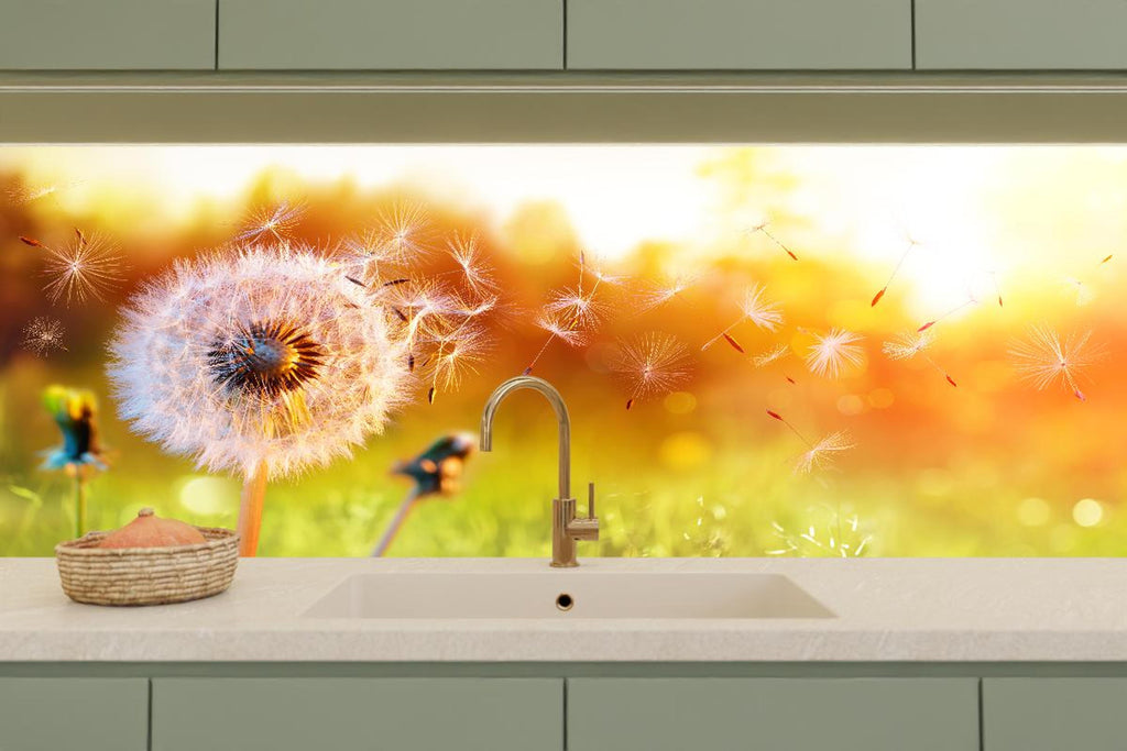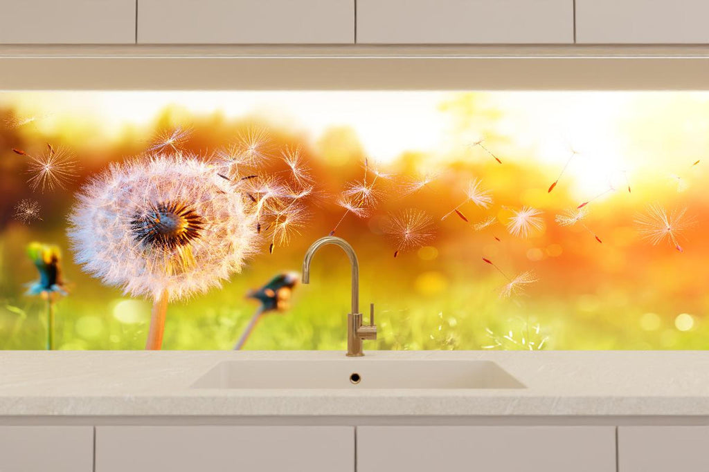 Küchenrückwand - Löwenzahn im Feld bei Sonnenuntergang