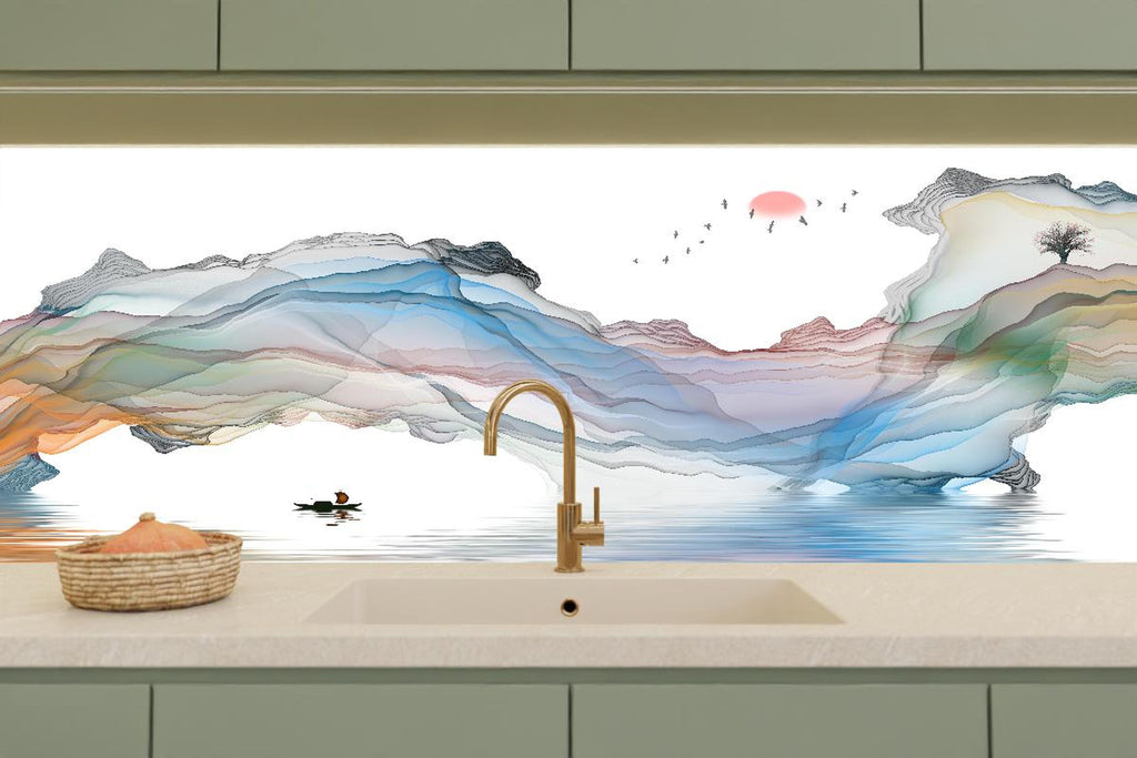 Küchenrückwand - Modernes Wasserfarben Gemälde Boot Vögel See