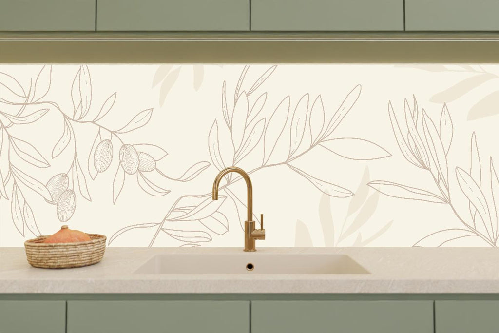 Küchenrückwand - Nahtloses Beige Zweig Illustrationsmuster