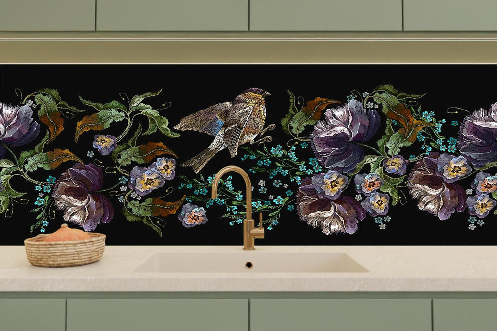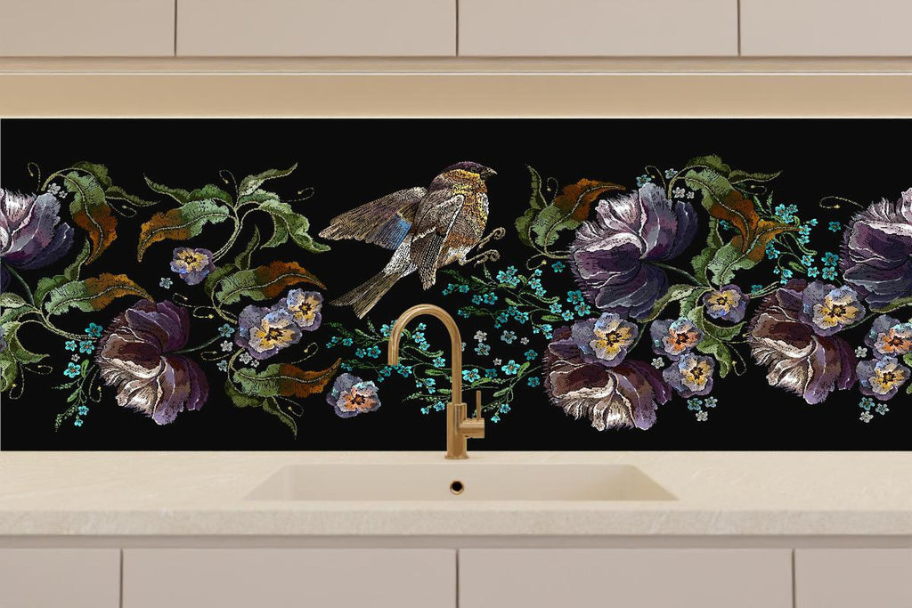 Küchenrückwand - Nahtloses Blumen-Vogel-Stickerei-Muster
