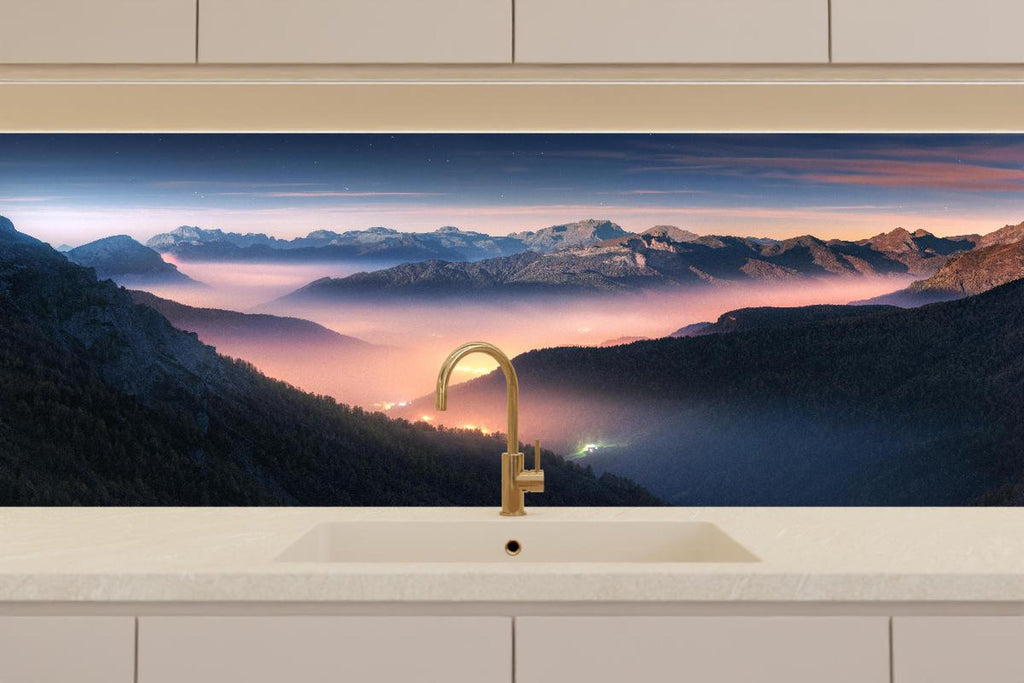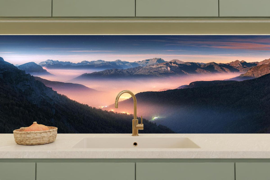 Küchenrückwand - Nebliger Blick auf Dolomiten