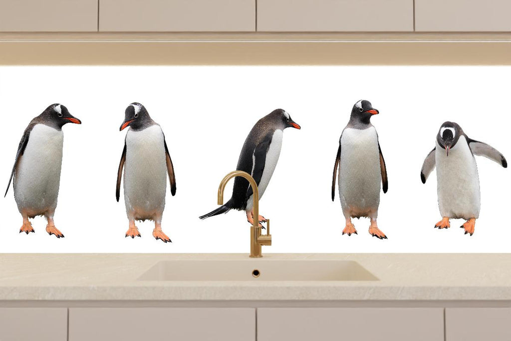 Küchenrückwand - Pinguine auf weißem Hintergrund