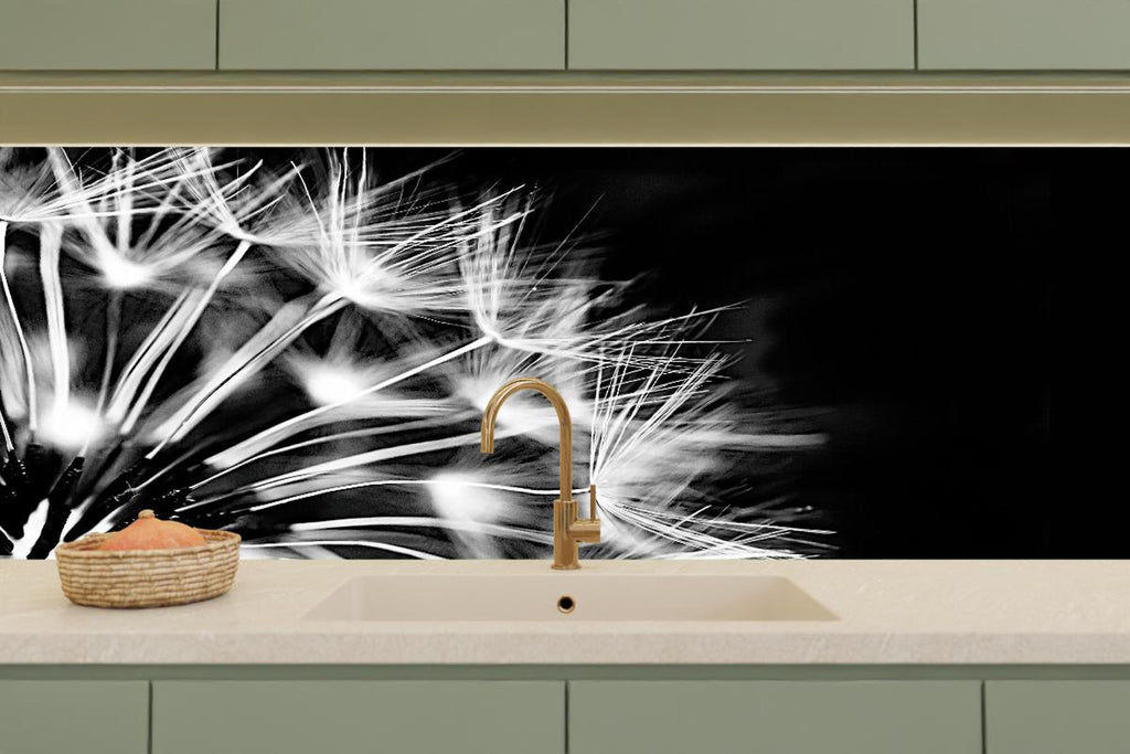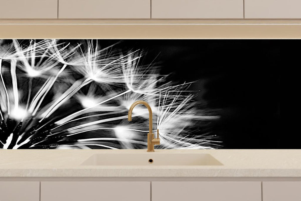 Küchenrückwand - Pusteblumen schwarz-weiß Hintergrund
