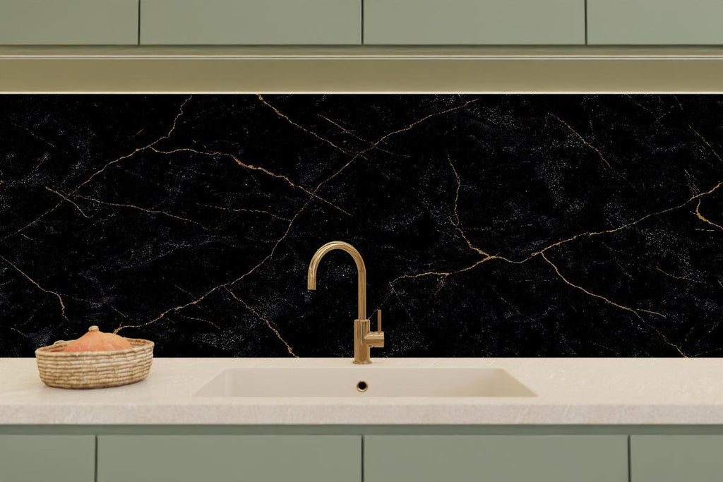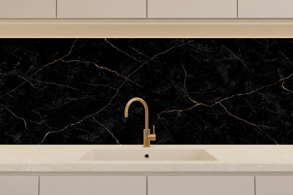 Küchenrückwand - Schwarzer Marmor mit dünnen goldenen Adern