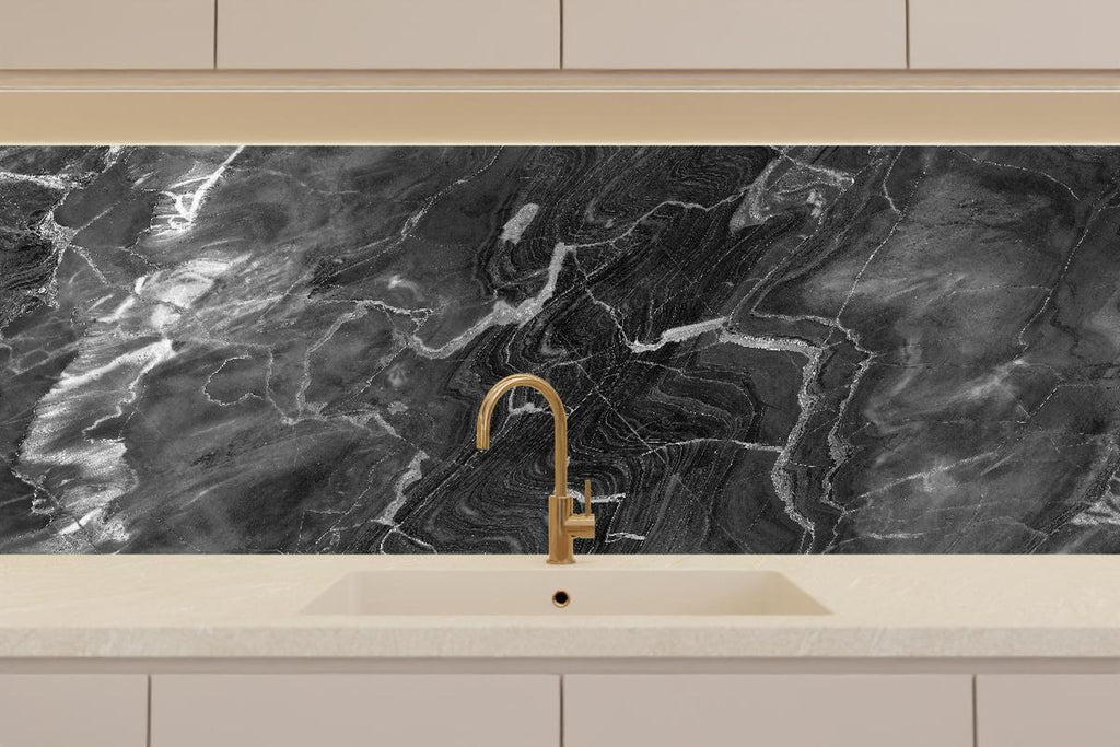 Küchenrückwand - Schwarzer Marmor mit weißen Adern