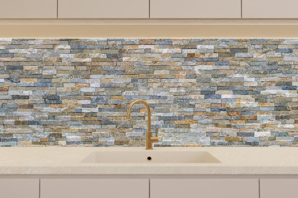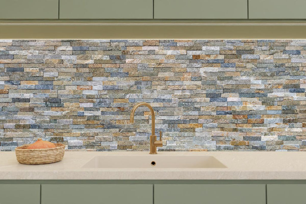 Küchenrückwand - Wand aus farbigen Verblendsteinen