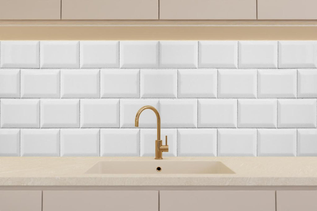 Küchenrückwand - Weiße helle glänzende Ziegelfliesen