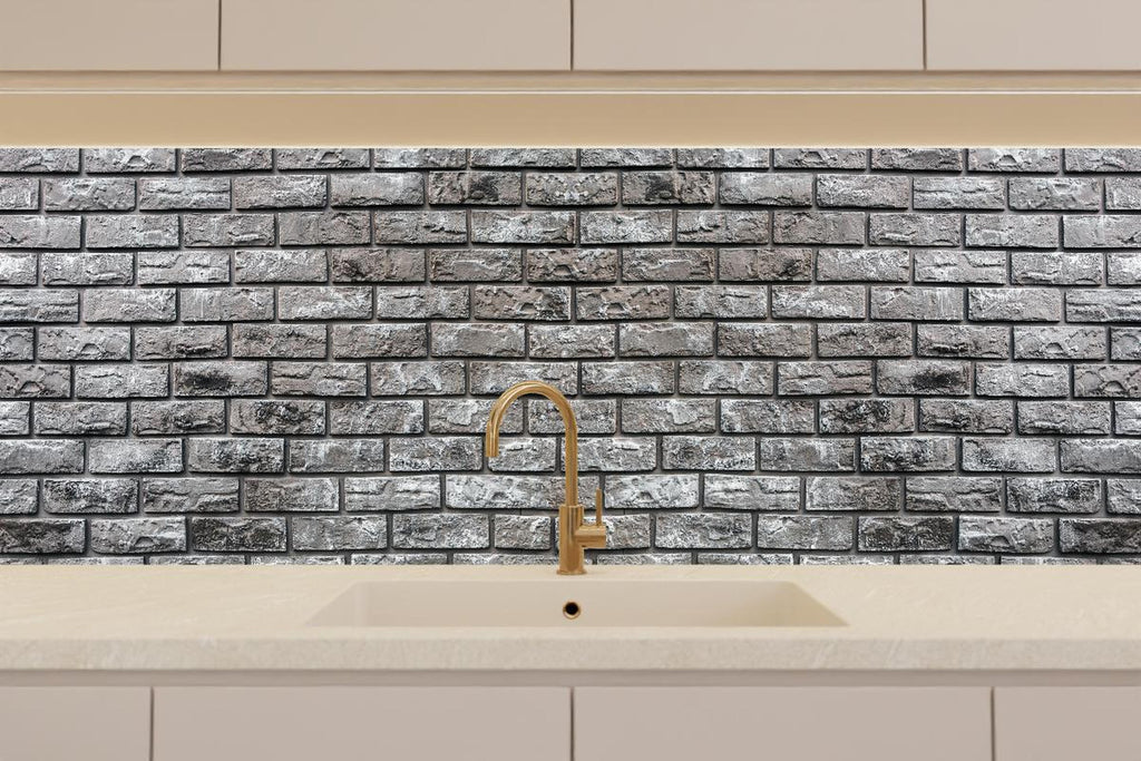 Küchenrückwand - Ziegelmauer aus dekorativem grauem Stein