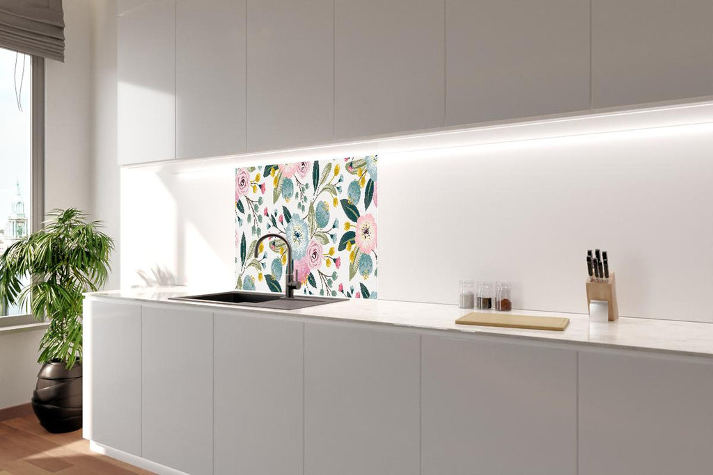 Spritzschutz - Abstrakte Blumenmuster in Rosa und Hellblau