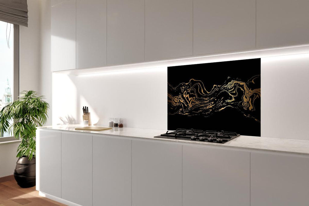 Spritzschutz - Abstrakte goldene Marmortextur mit Wellenlinien