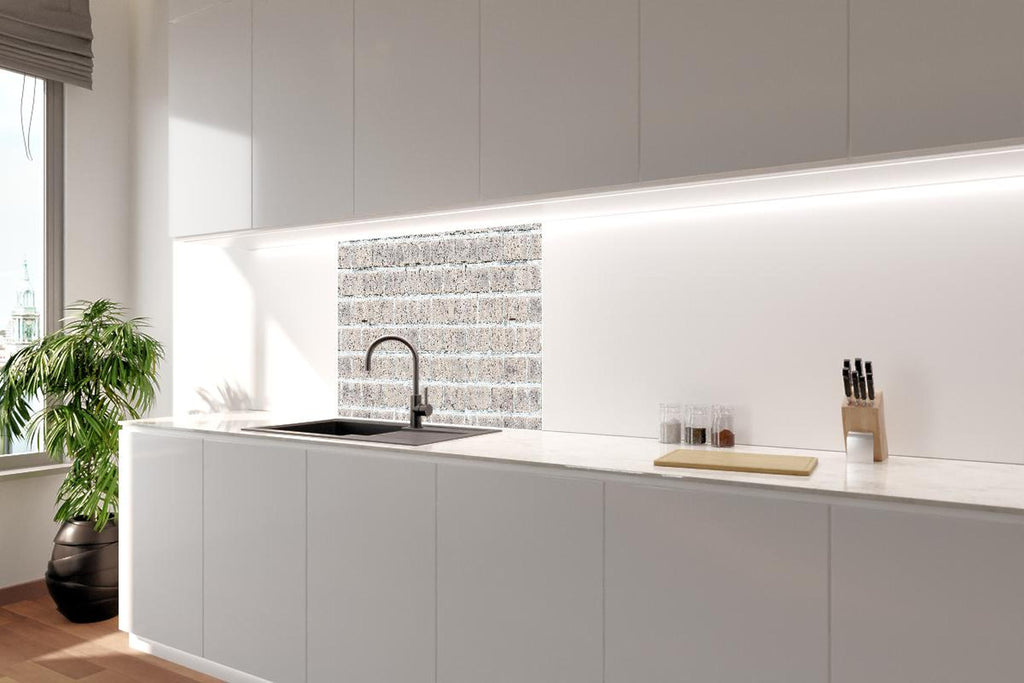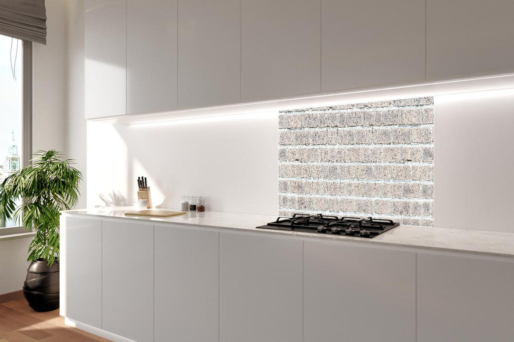 Spritzschutz - Alte weiße Vintage Backsteinmauer