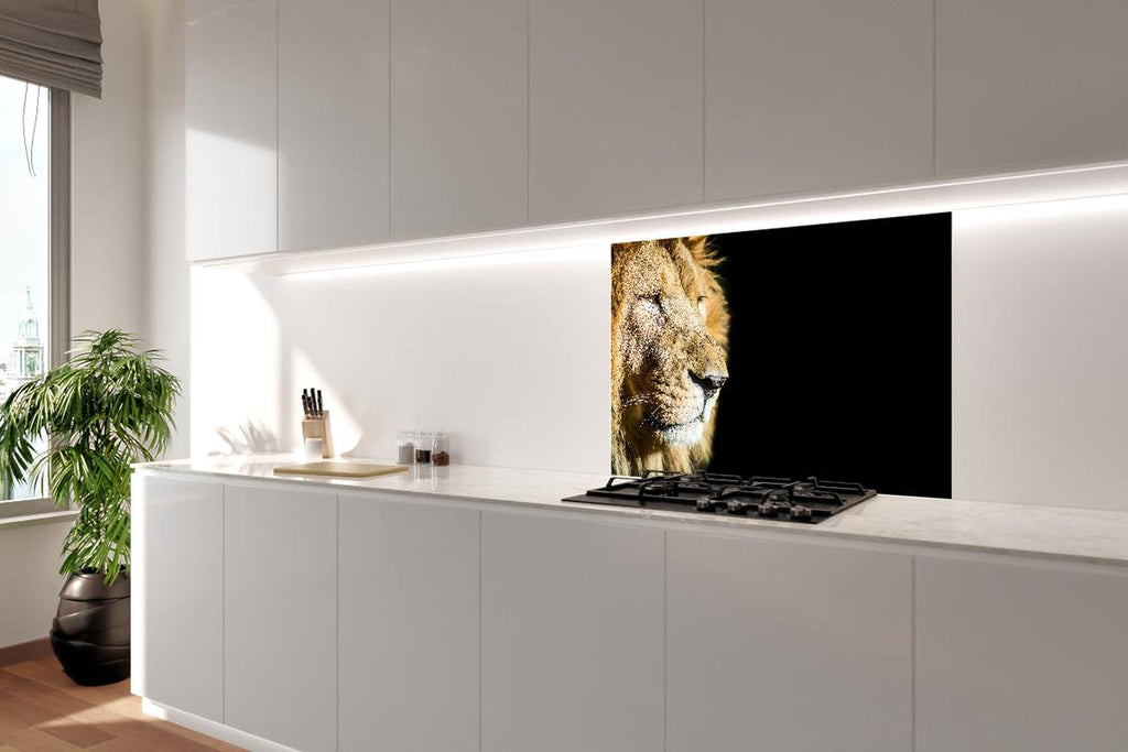 Spritzschutz - Alter Löwe auf schwarzem Hintergrund