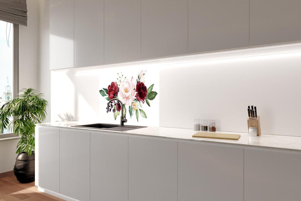 Spritzschutz - Aquarell bordeauxfarbene Blumen