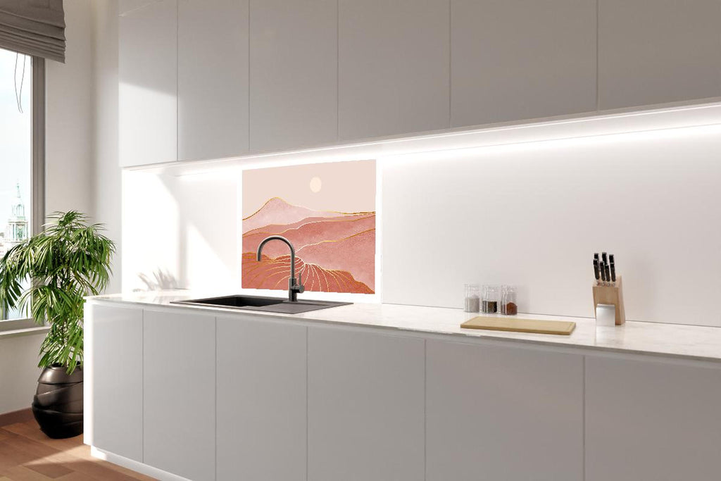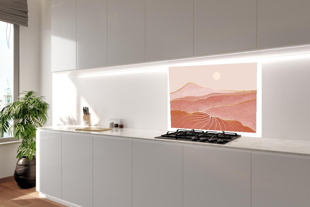 Spritzschutz - Beruhigende rosa Hügellandschaft Sonnenuntergang