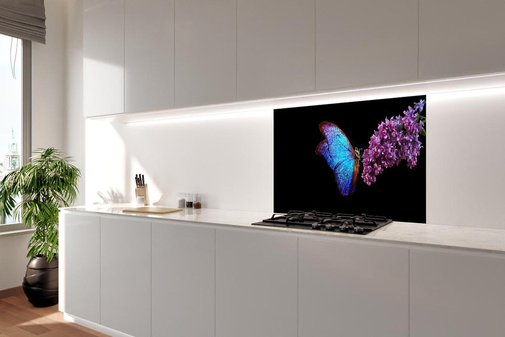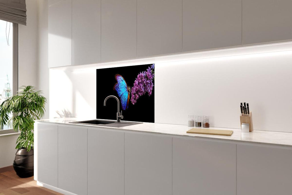 Spritzschutz - Bläulicher Schmetterling auf Blume