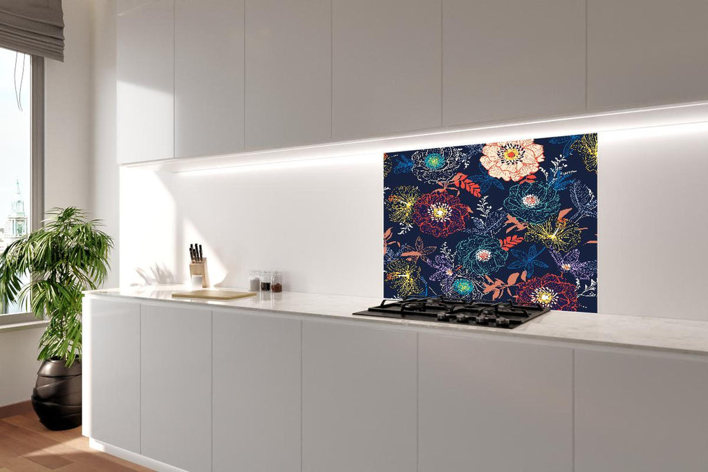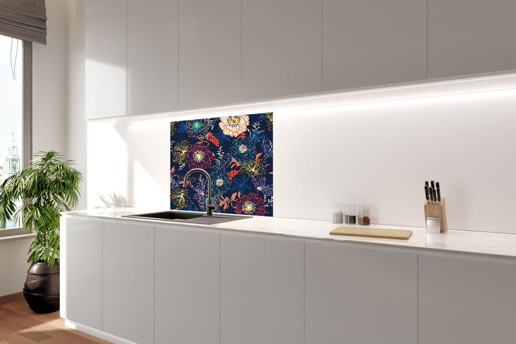 Spritzschutz - Blumiges Muster Dunkelbunt Illustration