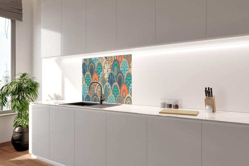 Spritzschutz - Buntes Mandala-Design mit floralen Mustern