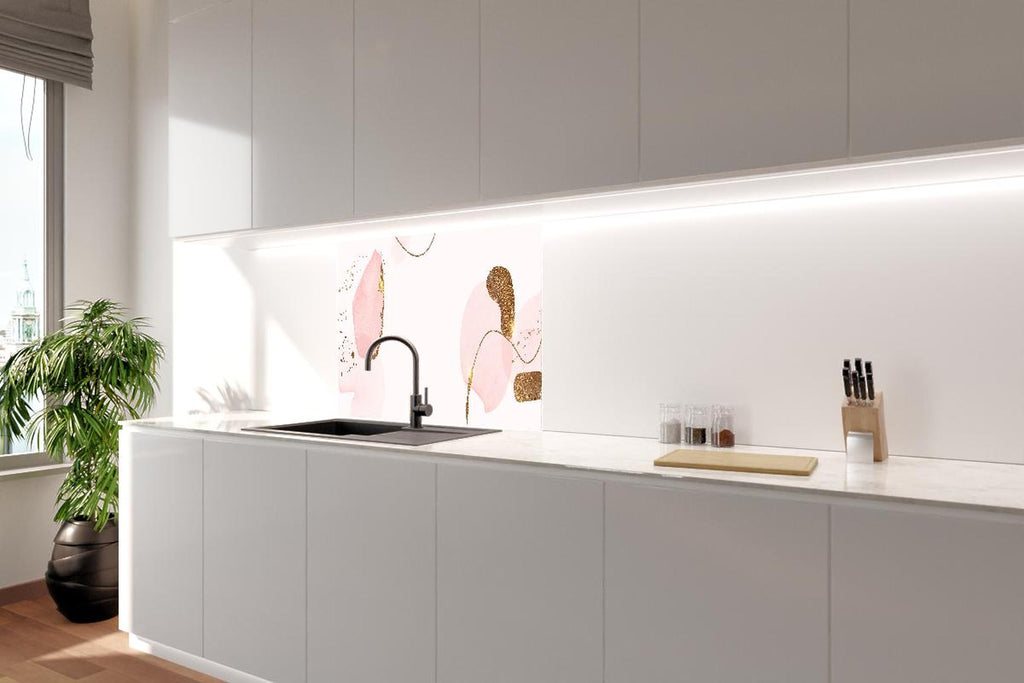 Spritzschutz - Chic Rosa und Gold Aquarell Kunstwerk