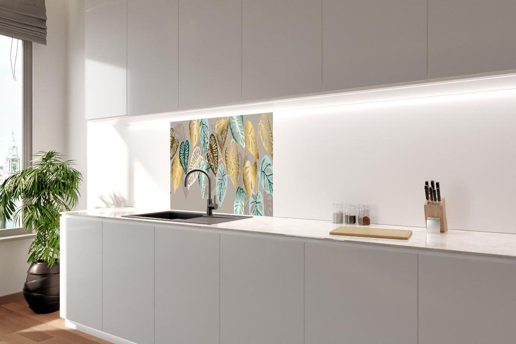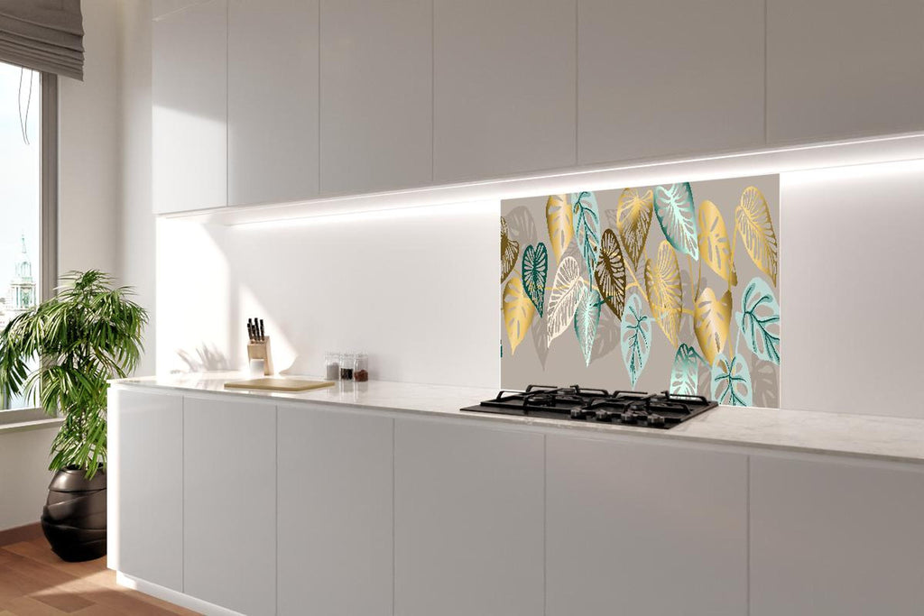 Spritzschutz - Elegantes Blattmuster in Goldtönen