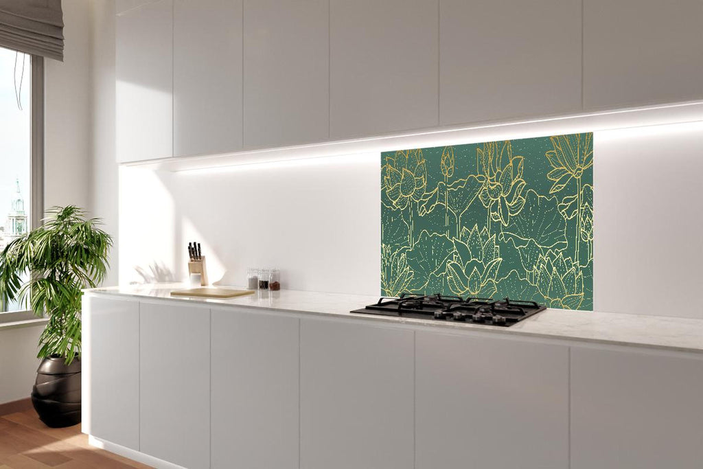 Spritzschutz - Elegantes Lotus Muster in Gold Lineart