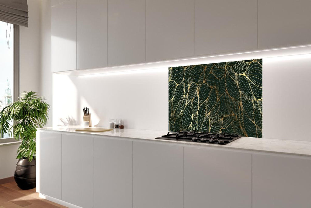 Spritzschutz - Elegantes Wellenmuster in Gold und Dunkelgrün