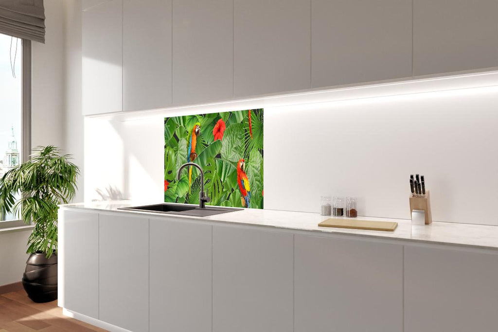 Spritzschutz - Exotisches Papageien-Dschungel-Motiv Tapete