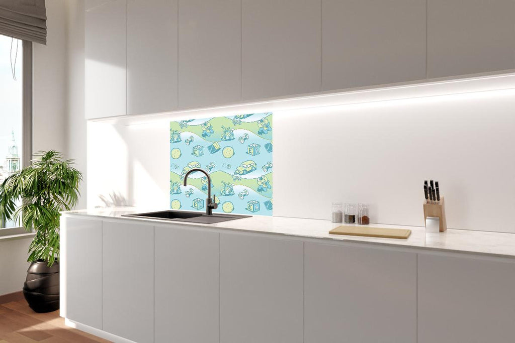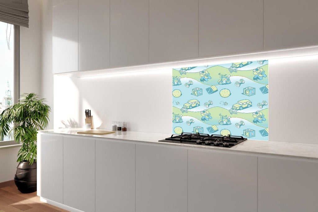 Spritzschutz - Farbenfrohe Spielzeug- und Transportmuster