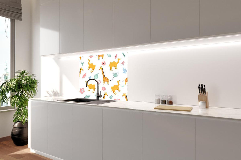 Spritzschutz - Farbenfrohes Giraffen-und-Blumen Musterdesign
