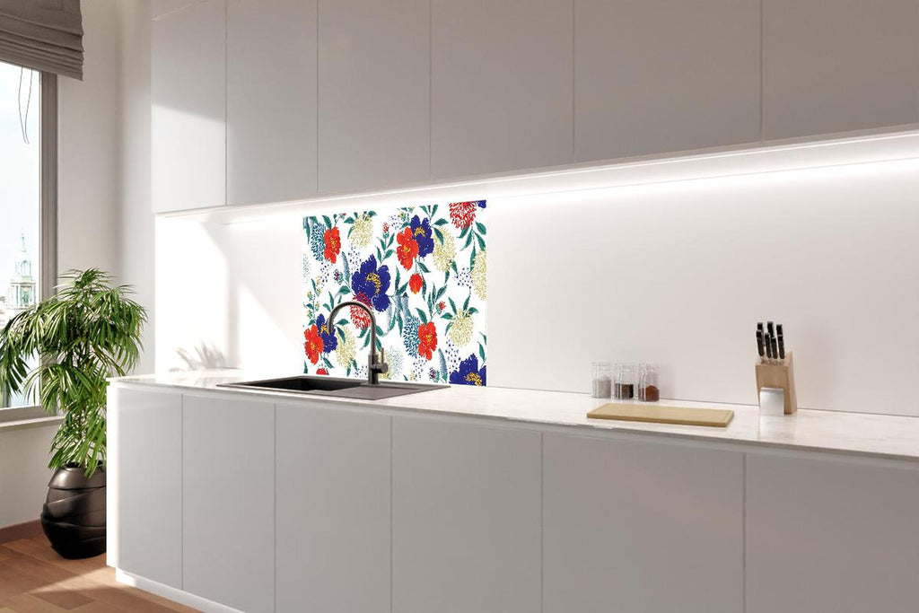 Spritzschutz - Florale Tapete mit buntem Blumen Design