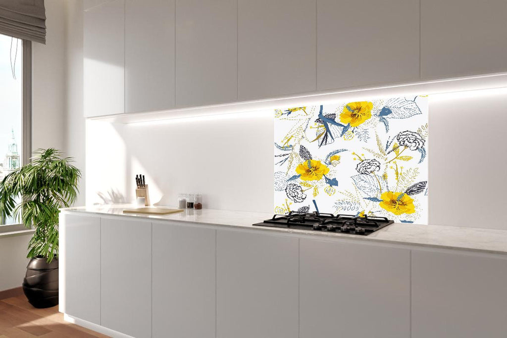 Spritzschutz - Florales Muster Gelb Weiß Illustration